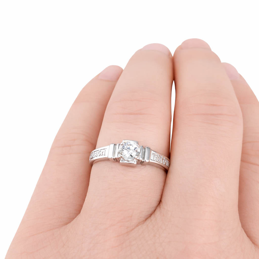 Die fein gravierte Inschrift „Herr, rette und bewahre mich“ steht für Schutz, Glauben und innere Stärke. Das Design kombiniert eine mattierte Oberfläche mit glatt polierten Elementen, wodurch ein eleganter, ausgewogener Kontrast entsteht.