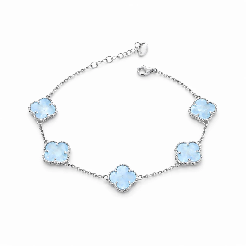 Armband „Kleeblatt“ aus russischem 925 Silber mit bläulichem Perlmutt — Arm4006-SeBl5