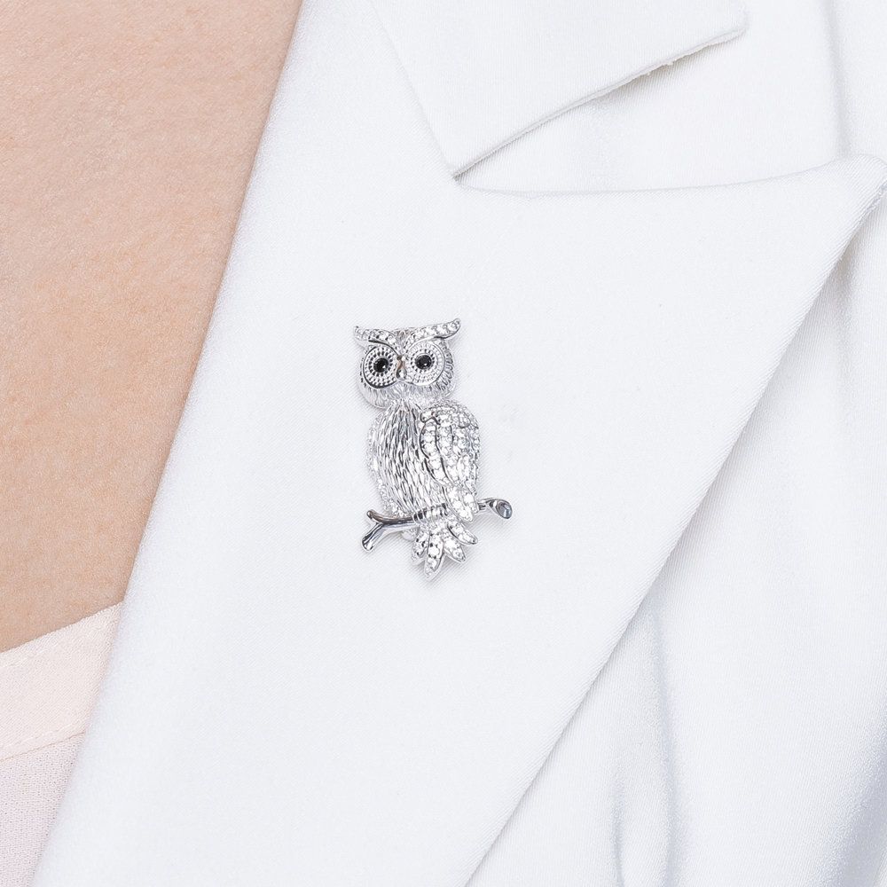 Brosche "Eule" 925 Sterling Silber mit Zirkonia PIN-S-040062