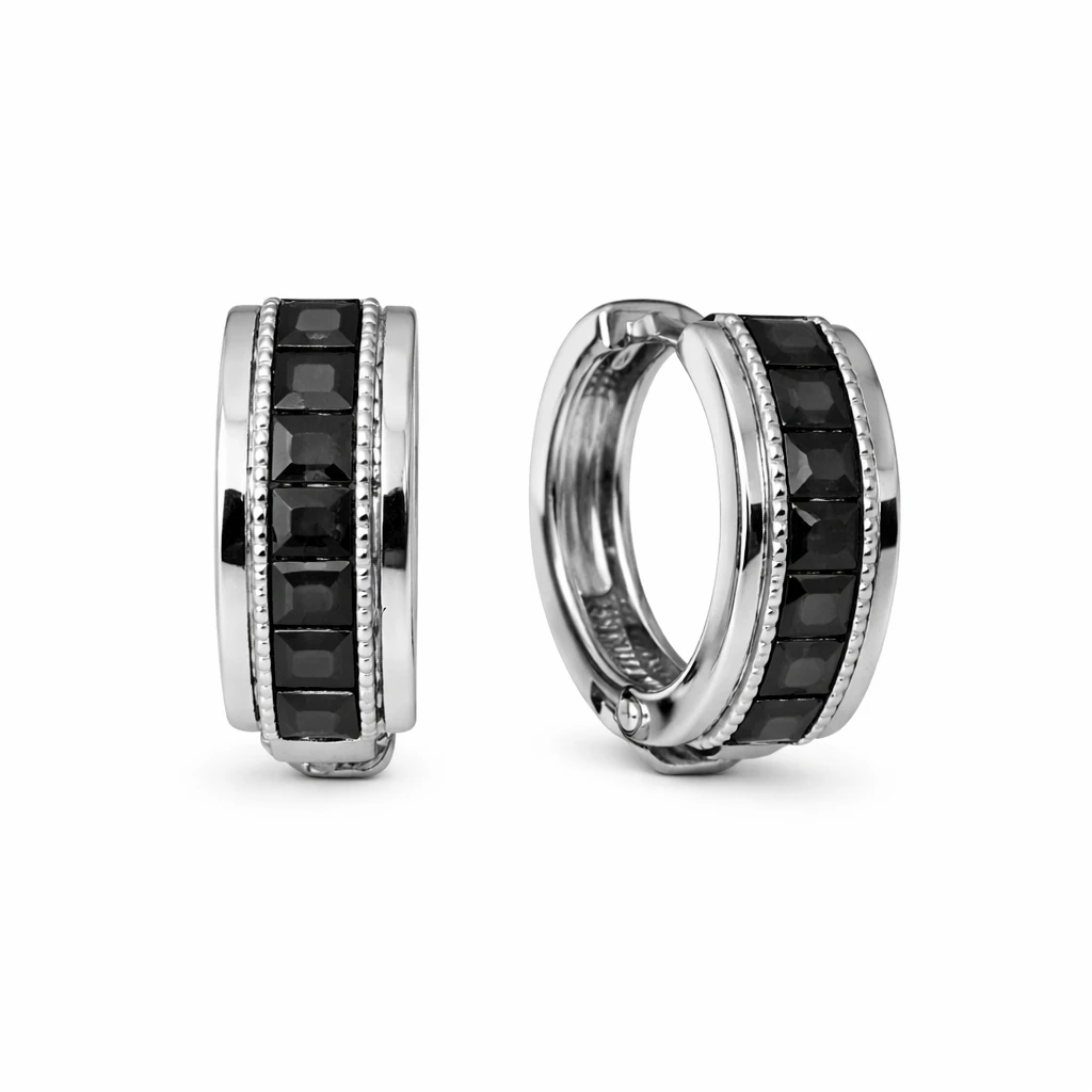 Die Creolen-Ohrringe ORs517011515Sw bestehen aus hochwertigem 925er Sterlingsilber und sind mit großen, quadratischen schwarzen Zirkonia besetzt, die dem Schmuckstück eine moderne und ausdrucksstarke Optik verleihen.