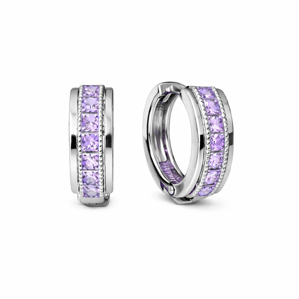 Die violetten Zirkonia sind präzise gefasst und sorgen für ein luxuriöses Funkeln, das an echte Edelsteine erinnert. Dadurch wirken die Ohrringe besonders elegant und hochwertig.