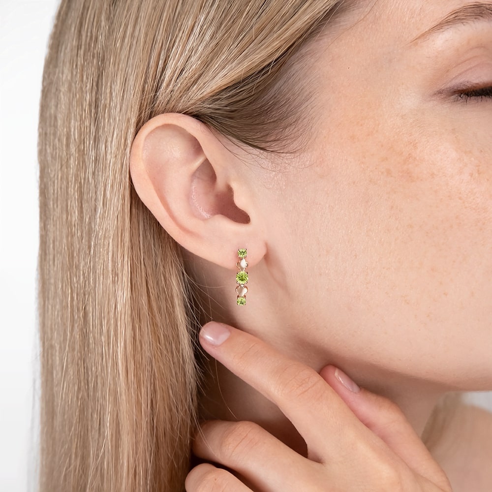 Diese eleganten Ohrringe vereinen zeitlose Schönheit und höchsten Tragekomfort. Hergestellt aus hochwertigem 585er Rotgold, verleihen sie jedem Look eine warme und luxuriöse Ausstrahlung. Die funkelnden, natürlichen Chrysolithe in runder Form ziehen alle Blicke auf sich und symbolisieren Frische und Harmonie.