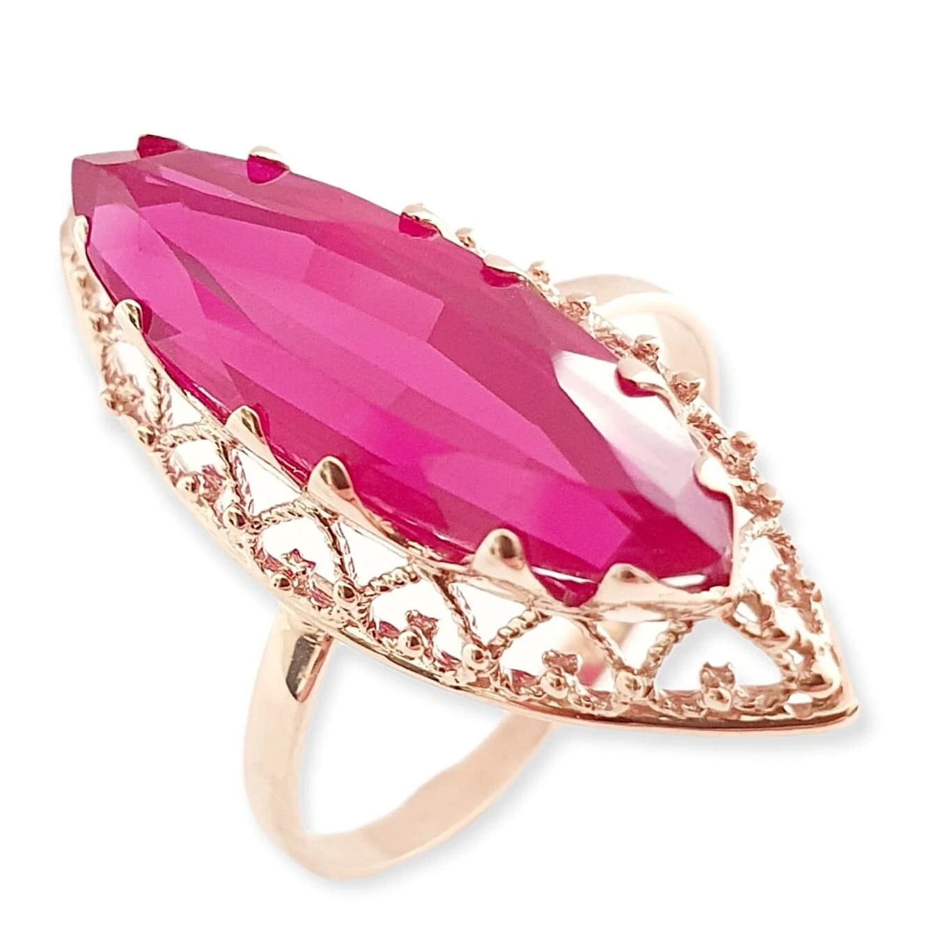 Das Schmuckstück ist mit erstaunlichem Design und mit synt. Rubin verziert.