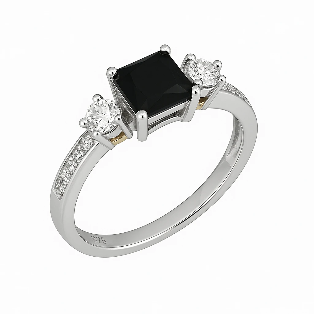 Verpassen Sie nicht die Gelegenheit, diesen wunderschönen Damenring aus 925er Silber mit weißen und einem großen schwarzen Zirkonia zu besitzen. Er wird Ihnen Komplimente und bewundernde Blicke bescheren und Ihre Schmucksammlung bereichern.