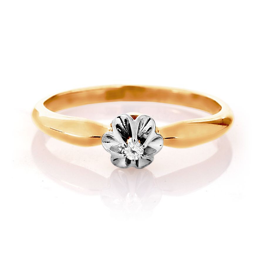 Das Schmuckstück mit klassisches Design und glänzt mit farblosen Brillant. Verlobungsring.