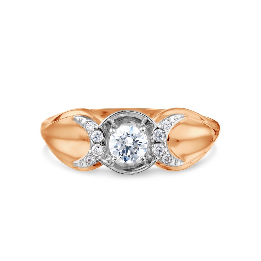 Ring aus 585er Rotgold, der zuvor mit der "Rhodium" - Technologie verarbeitet wurde. Das Schmuckstück ist mit Zirkonia dekoriert.