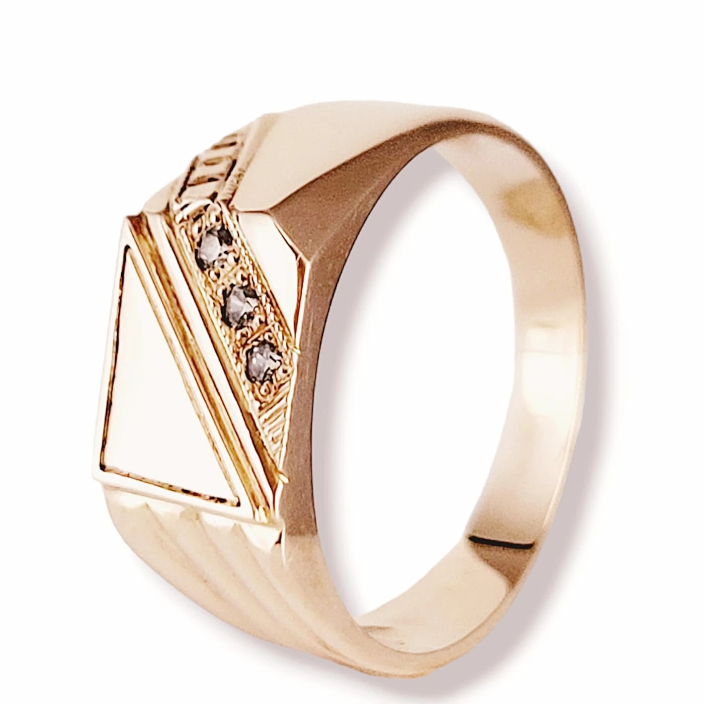 Herren Ring 585er Rotgold, verziert mit Zirkonia. Siegelring.