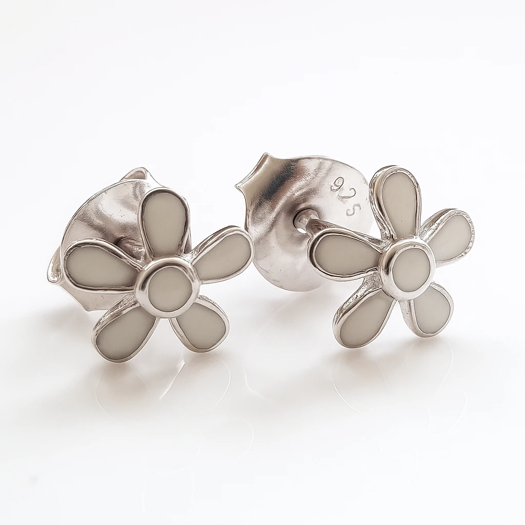 Kinder Ohrstecker aus 925 Silber – Blumenmotiv mit Emaille