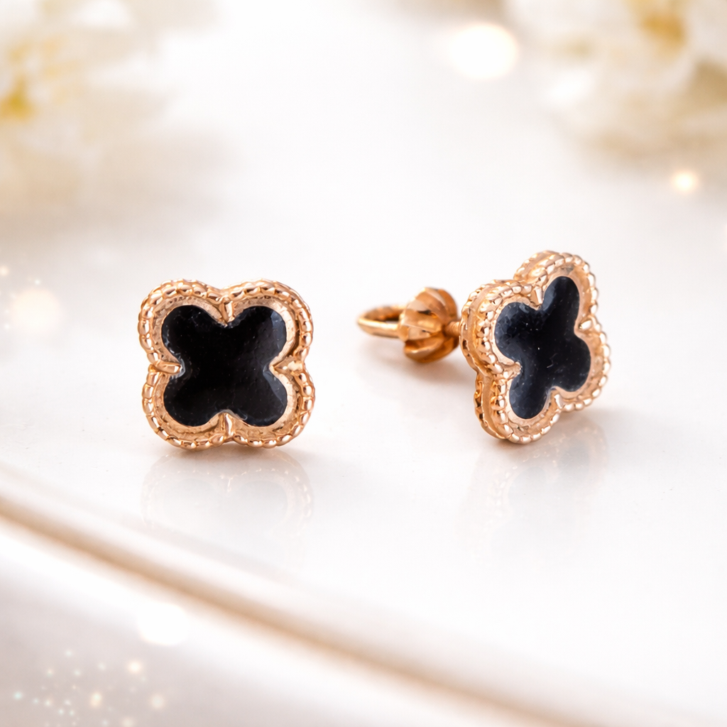 Kleeblatt Ohrringe aus Rotgold 585 mit Schmuckglas OR110330An