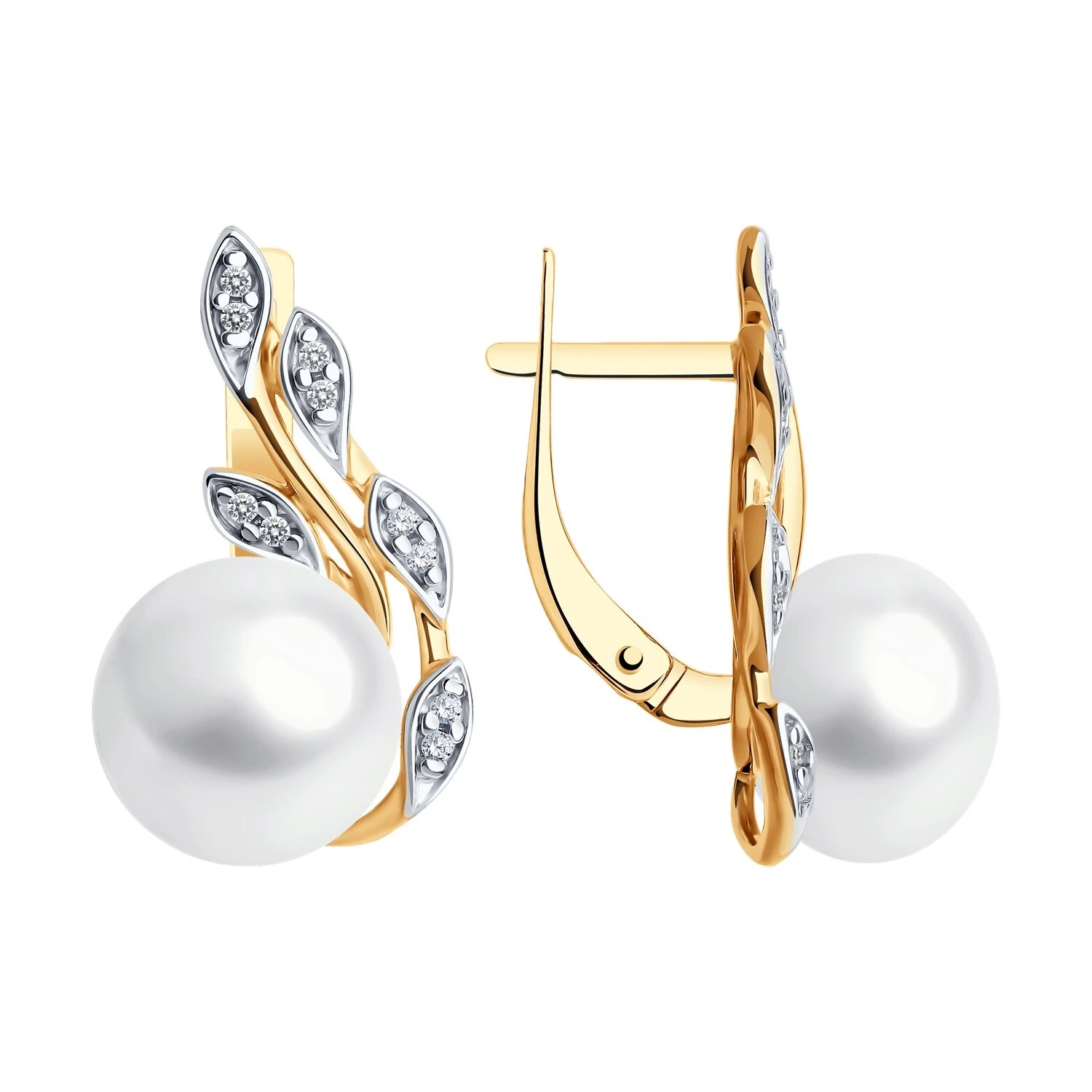 Ohrringe aus 925er Silber mit Perlen und Zirkonia, vergoldet (ORs92022659-91) mit englischem Verschluss