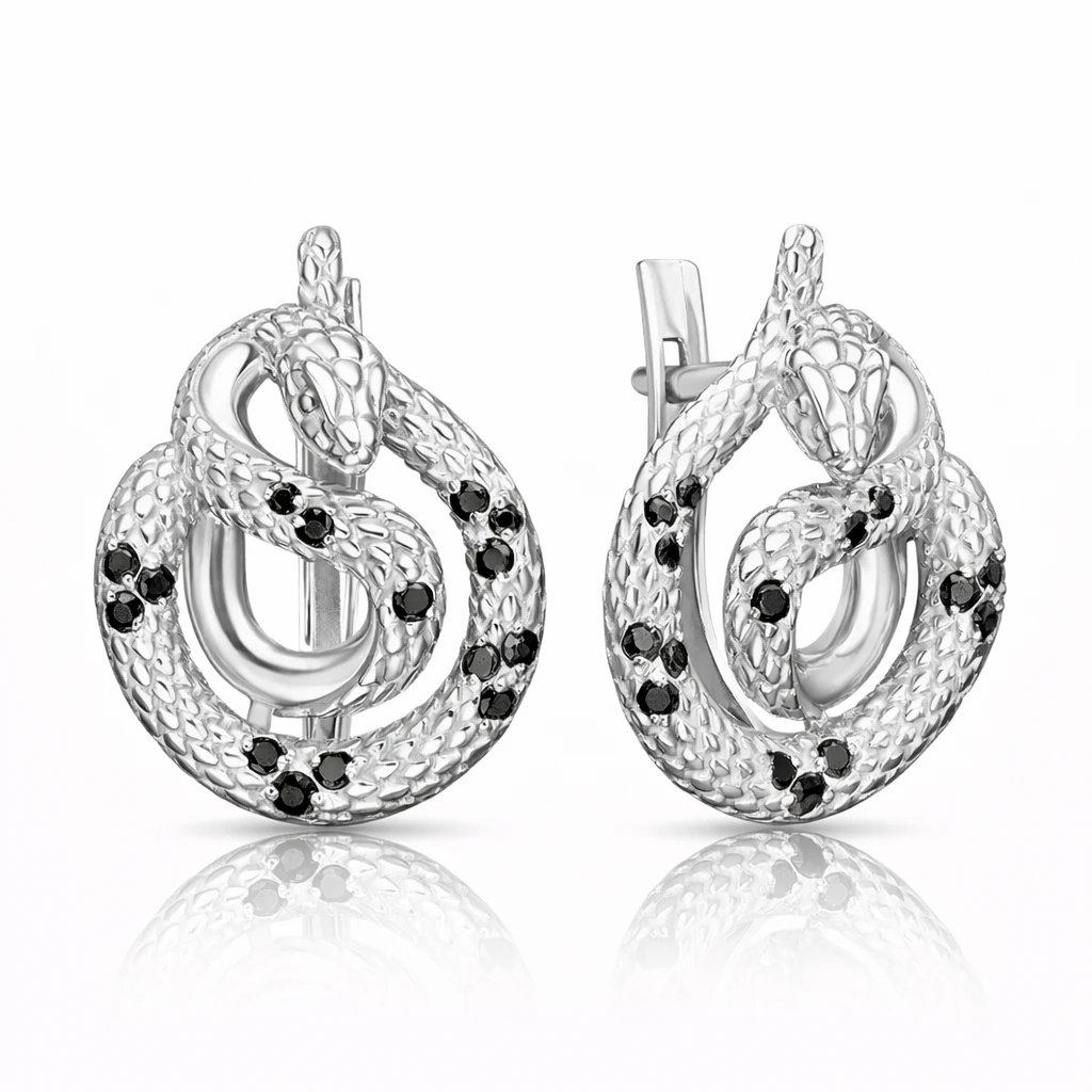 Ohrringe „Imperialer Python“ aus russischem 925 Silber mit schwarzen Zirkonia und englischem Verschluss — ORs5497-00-404-0200