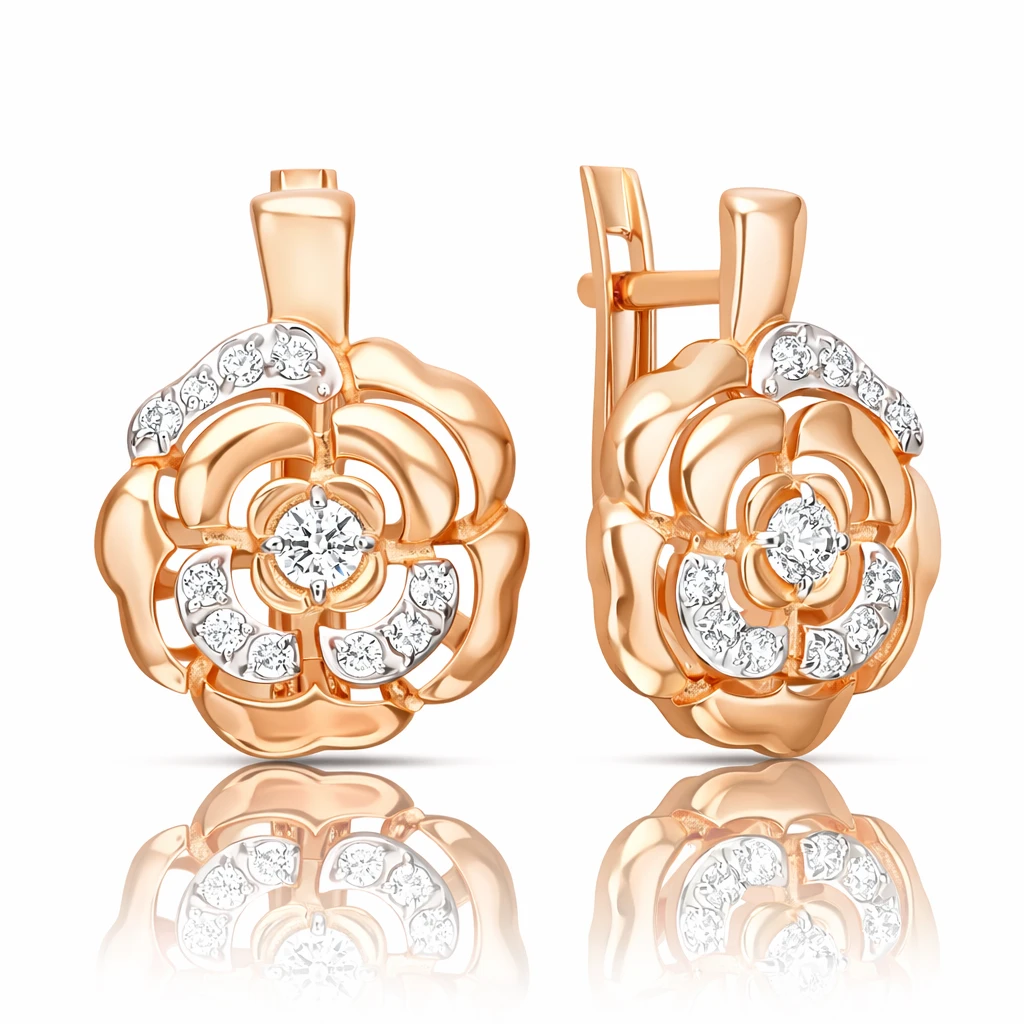 Ohrringe „Kamelien“ aus 585 Rotgold mit Zirkonia und englischem Verschluss — OR02-5528-00-401-1110