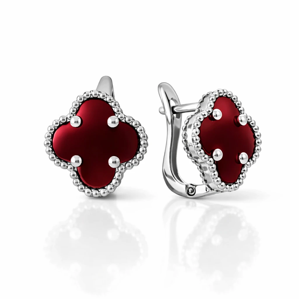 Ohrringe „Klee“ aus 925 Silber mit Karneol und englischem Verschluss — ORs0330Kl-R