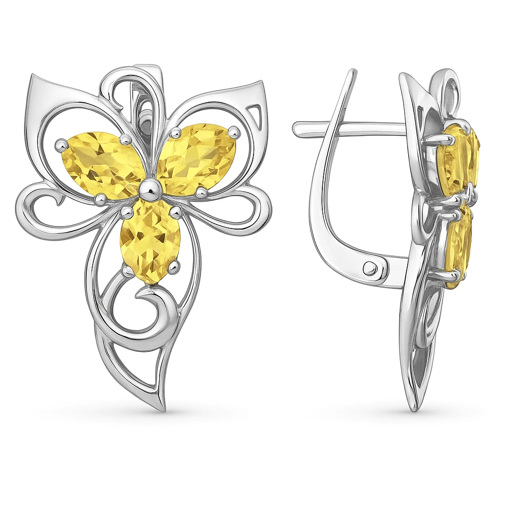 Damen Ohrringe mit Citrin, aus 925er Silber. Das Schmuckstück mit englischer* Verschluss.