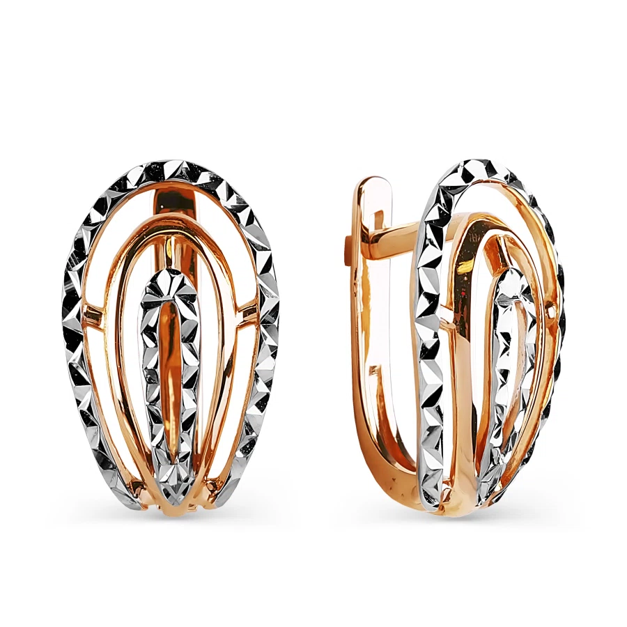 Damen Ohrringe aus 585er Rotgold, die zuvor mit der "Diamantiert, Rhodium" - Technologie verarbeitet wurden.
