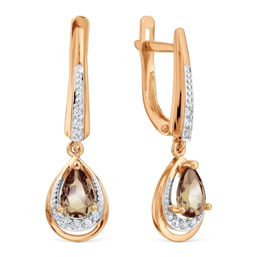Damen Ohrhänger mit Rauchtopas und Zirkonia 585er Rotgold (OR4302B402Rt)