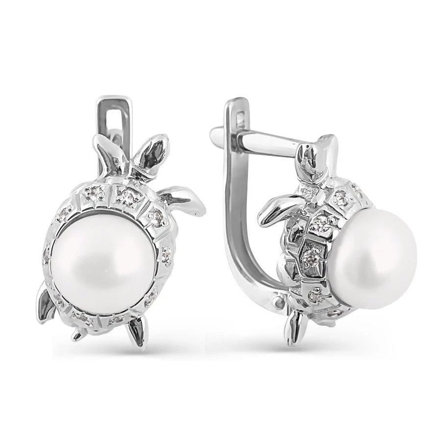 Damen- und Kinderohrringe Schildkröten aus 925er Silber mit Perle und Zirkonia (ORs024456)