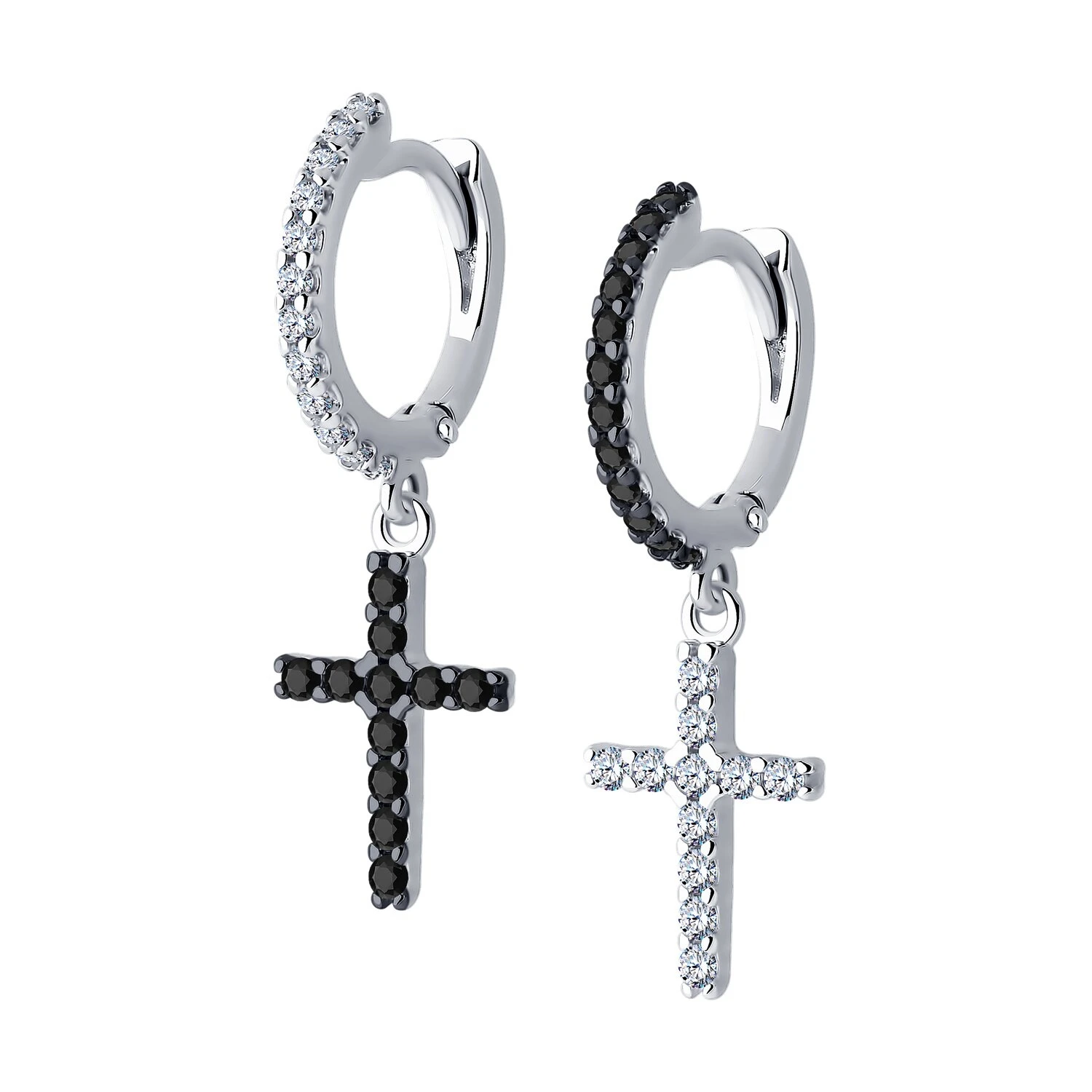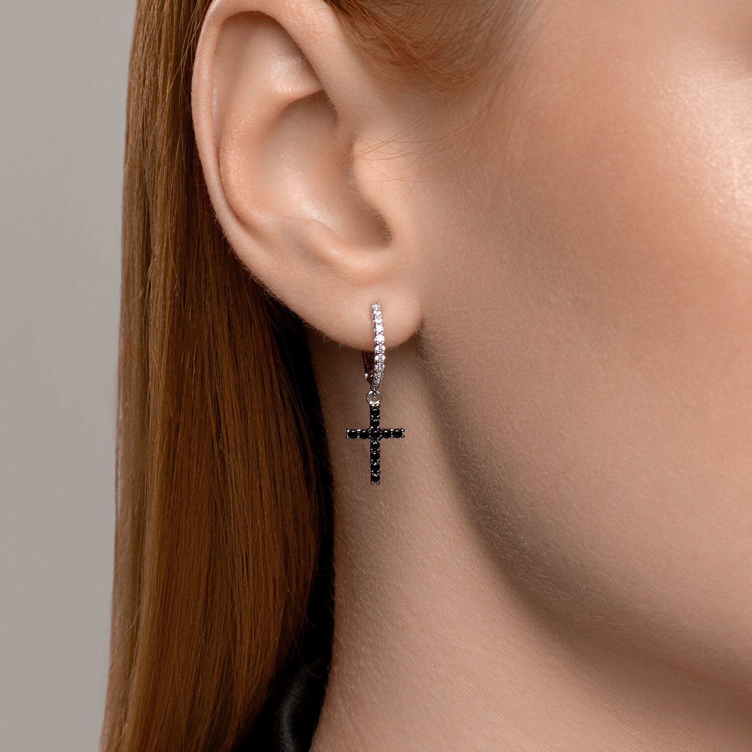 Paar Creolen "Kreuze" aus 925er Silber mit weißen und schwarzen Zirkonia⎪ORs94026500