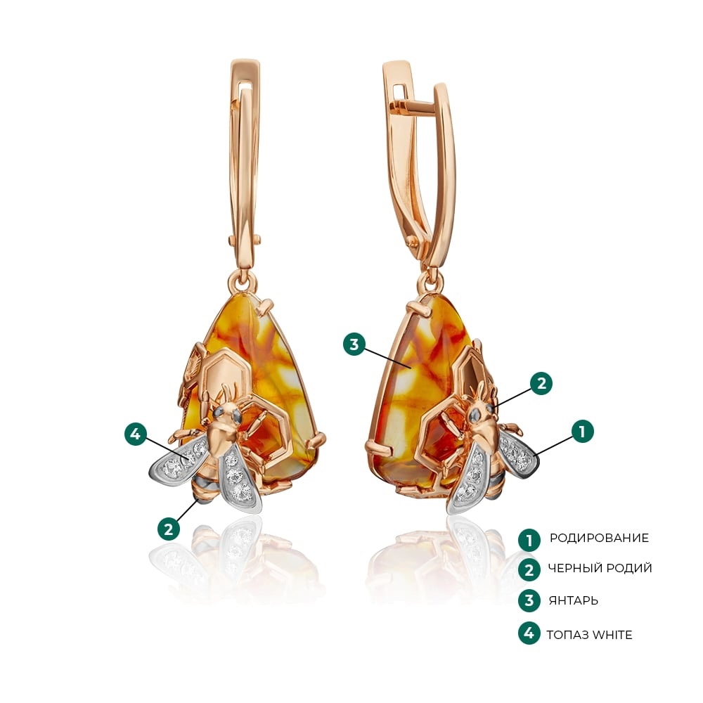 Paar Ohrhänger Bienen 585er Rotgold mit Bernstein Topase White | OR02-4682-00-733-1110-579