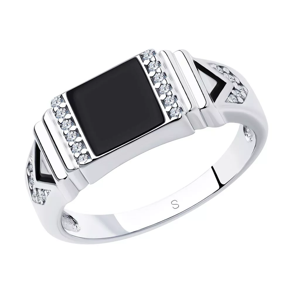 Herrenring mit Zirkonia und Emaille