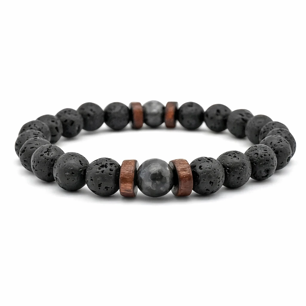 Браслет ARM39-8382Z выполнен из натурального вулканического камня и дополнен специальными бусинами, предназначенными для использования с эфирными маслами. Это стильное украшение сочетает в себе природную энергетику, практичность и современный дизайн.