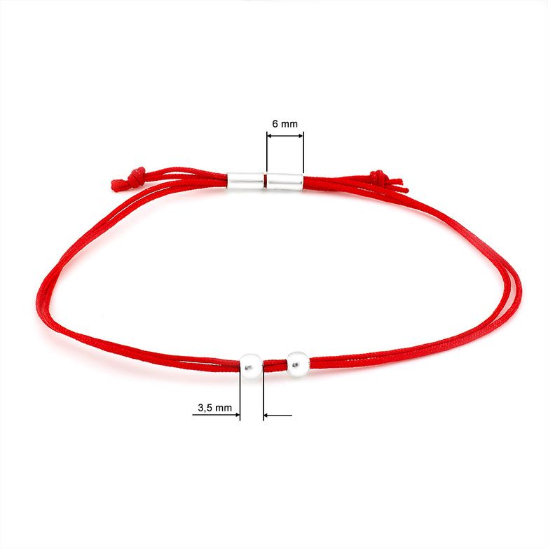 Браслет с серебром на красной шелковой нитке ARMs487 | Размер Регулируемый