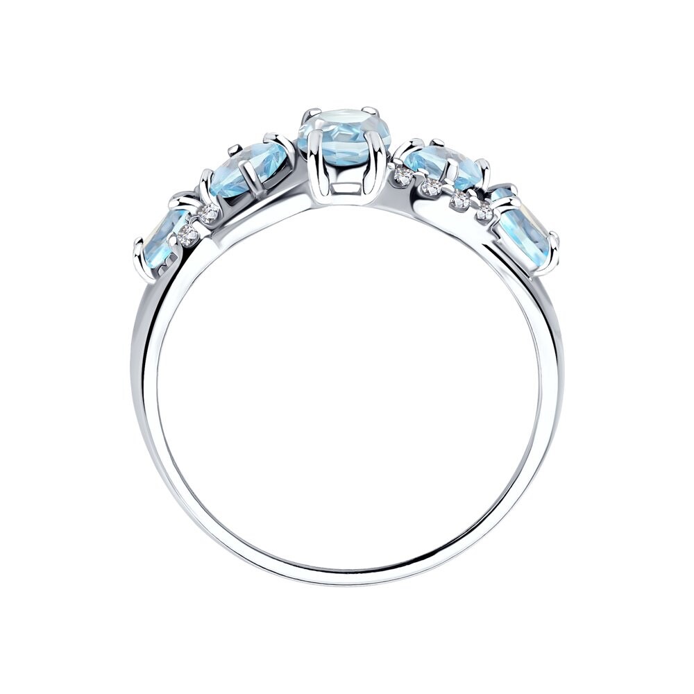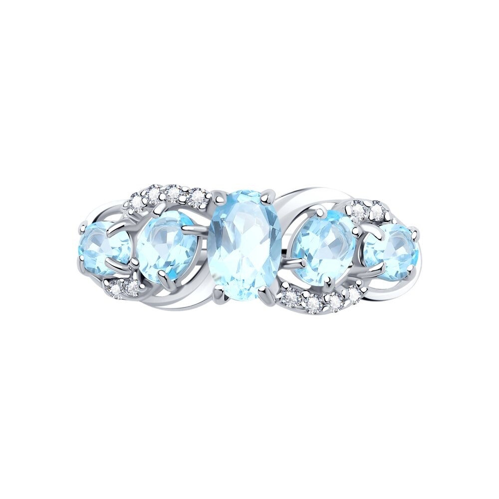 Это кольцо представляет собой изысканное украшение, воплощающее в себе элегантность родированного серебра, нежность натуральных топазов и блеск фианитов.