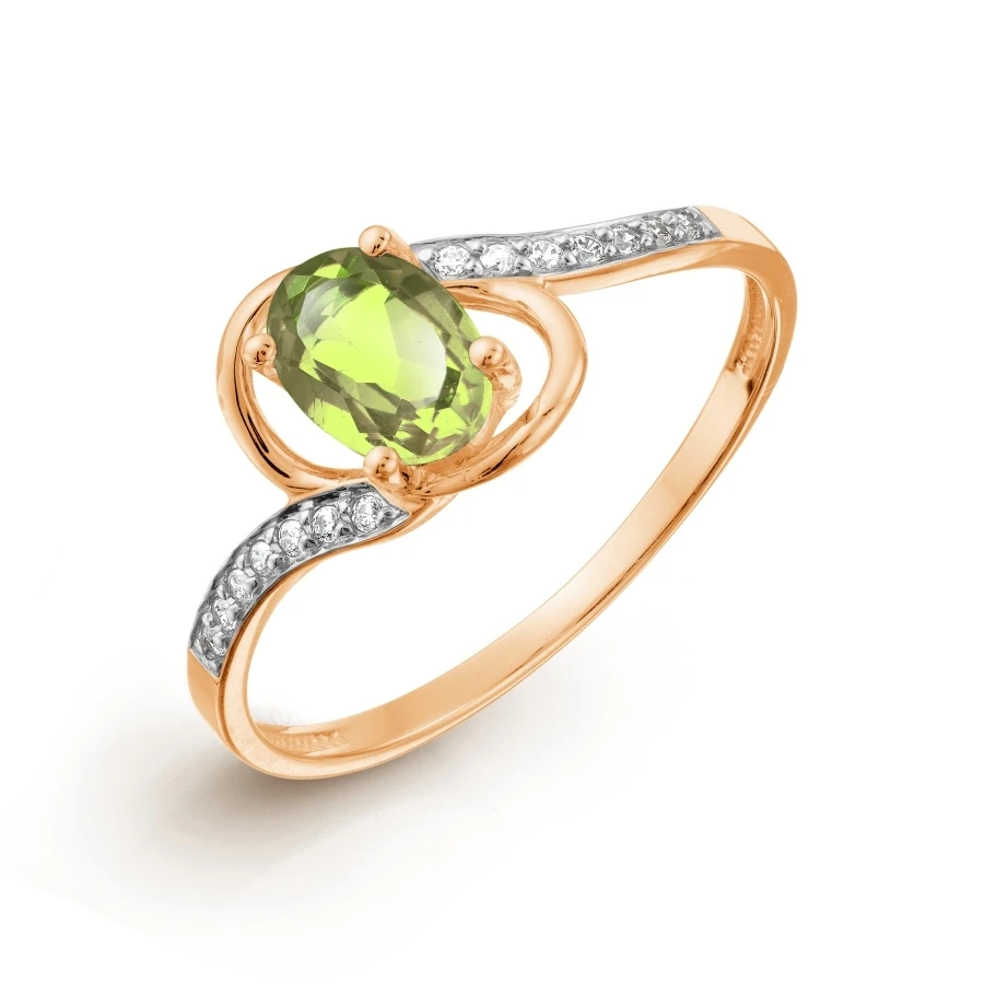 Кольцо из золота с хризолитом и фианитами DR17683Ch | Размер 18 (57)