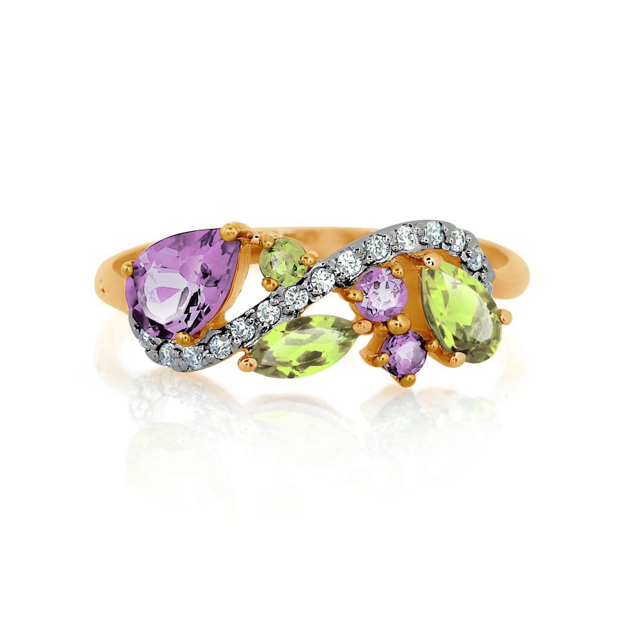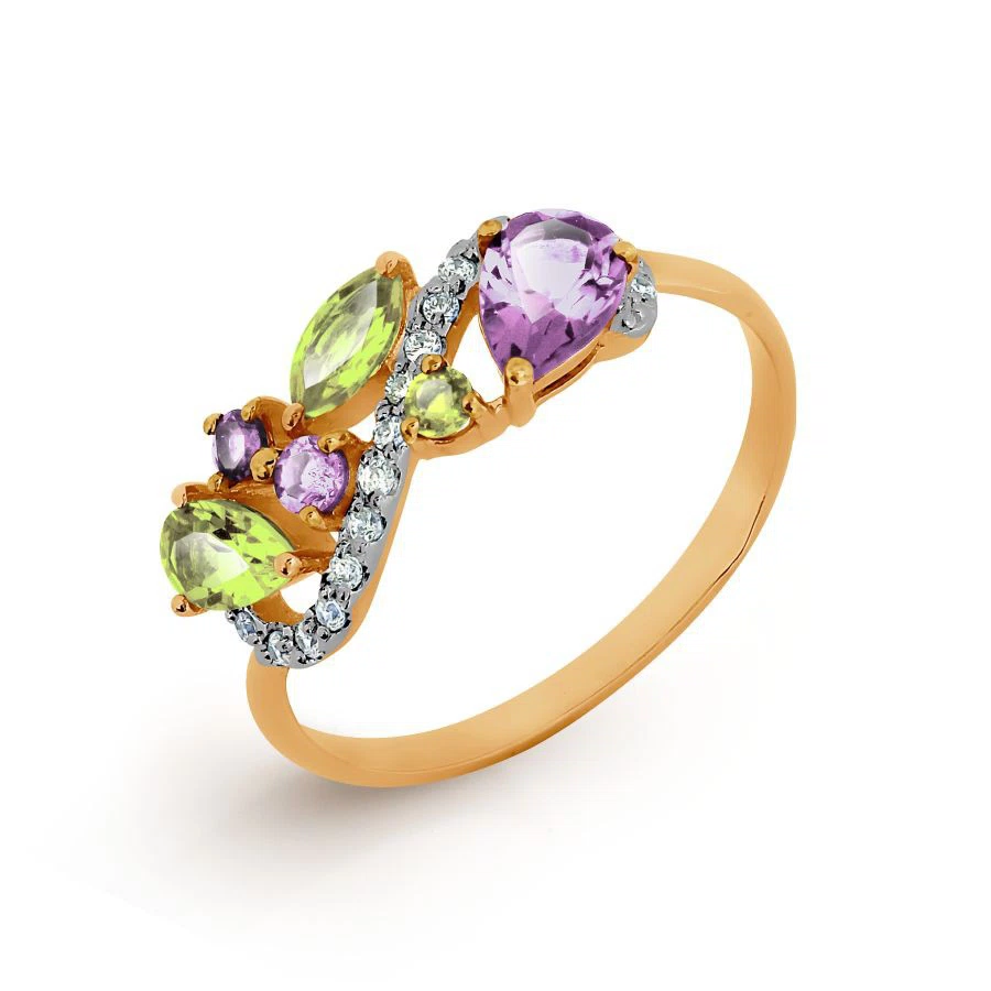 Кольцо с аметистами хризолитами и фианитами из красного золота 585 пробы DR17385-01 | Размер 17,5 (55)