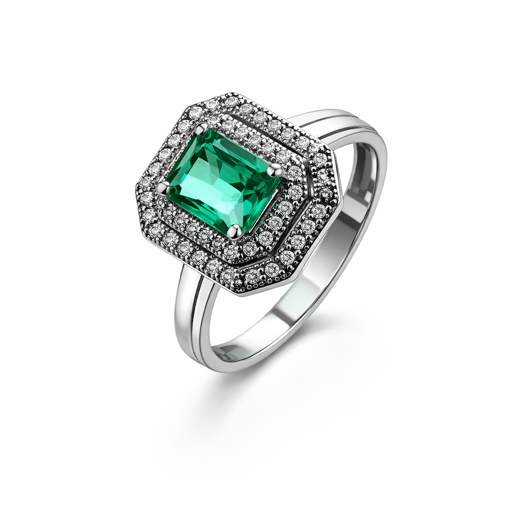 Благодаря гармоничному сочетанию насыщенного зелёного оттенка и блеска фианитов украшение выглядит особенно выразительно и привлекает внимание. Такое кольцо станет ярким акцентом образа и подчеркнёт индивидуальный стиль своей обладательницы.