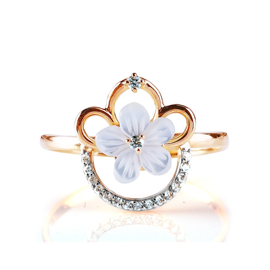 - Изделие с невероятным дизайном, перламутром в виде цветка и блистает фианитами.