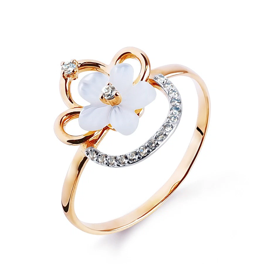 Кольцо с перламутром и фианитами золото 585 пробы DR14773 | Размер 18 (57)