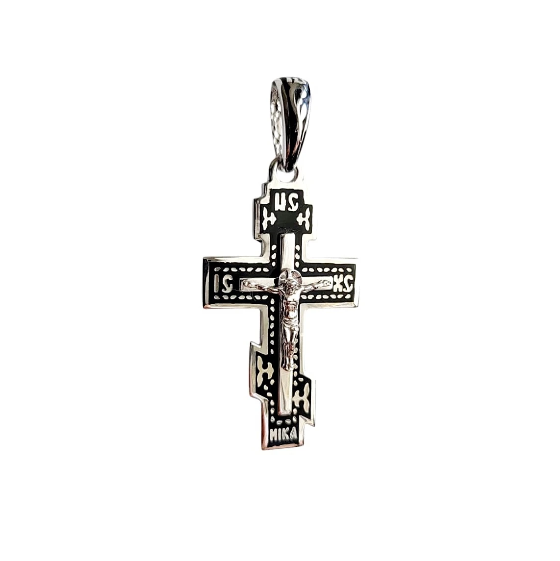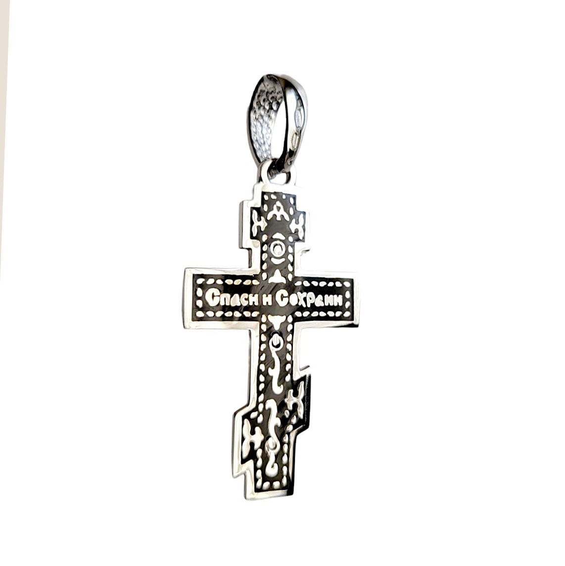 Изделие обладает гладкой полированной поверхностью, приятной на ощупь, и отличается аккуратной проработкой всех деталей. Черная эмаль не только подчёркивает форму и линии креста, но и делает его современным и универсальным. Крест можно носить каждый день или по особым случаям, сочетая его как с классической цепочкой, так и с кожаным шнурком. Такой аксессуар станет отличным подарком близкому человеку.