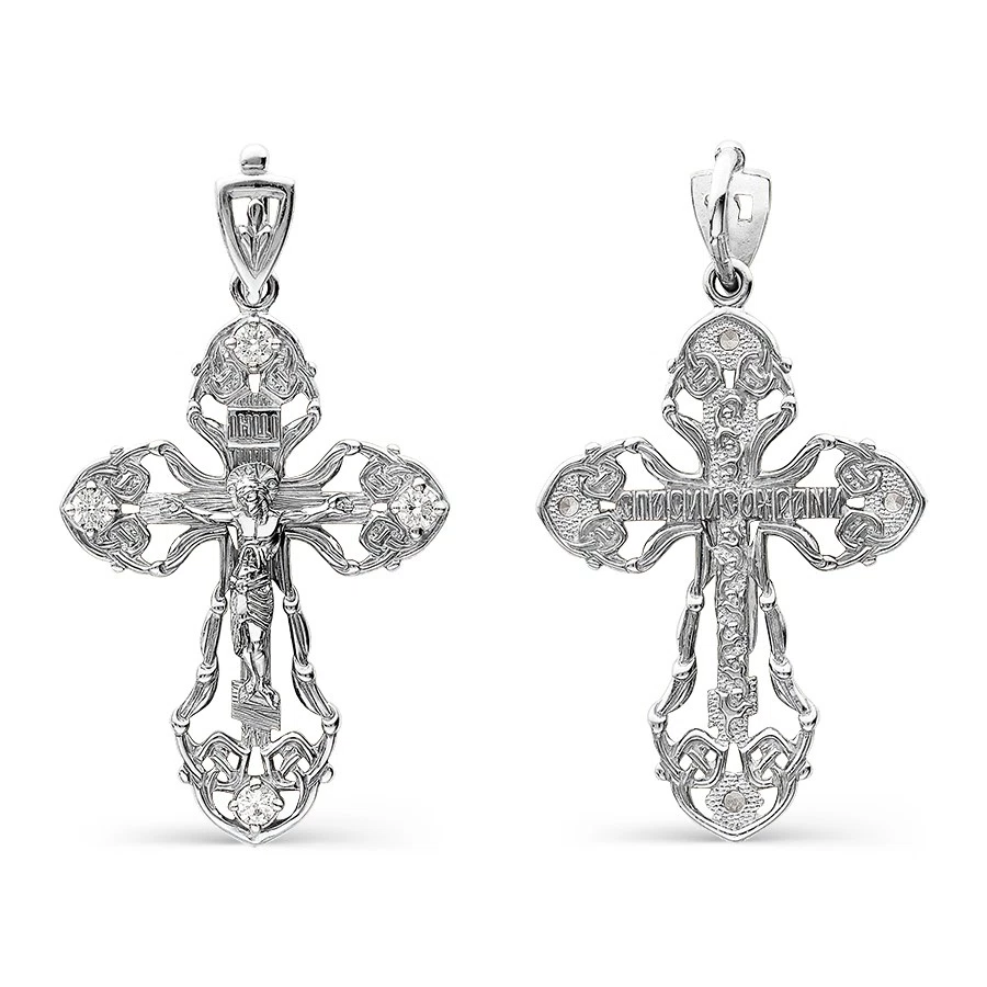 Крестик с фианитами из белого золота KR06329