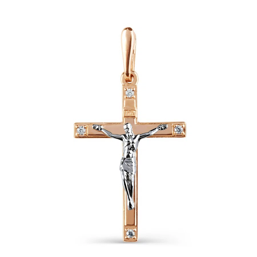 Крестик с фианитами из красного золота KR06429