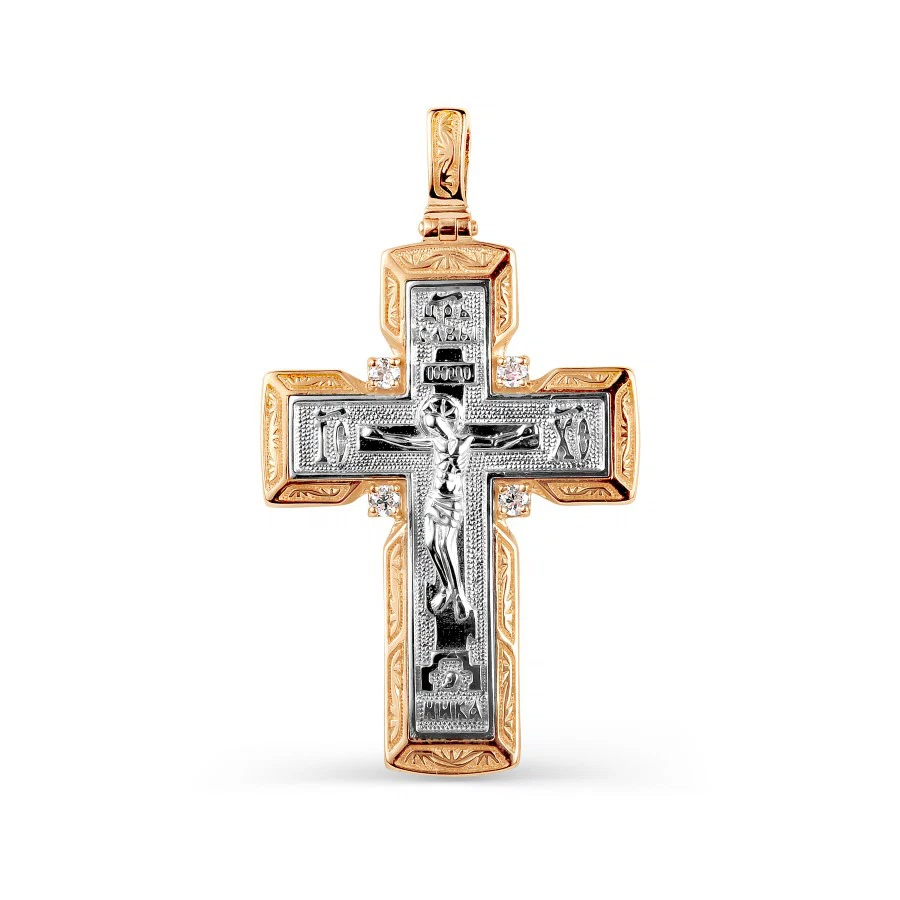 Крестик с фианитами из красного золота 585 пробы KR06470