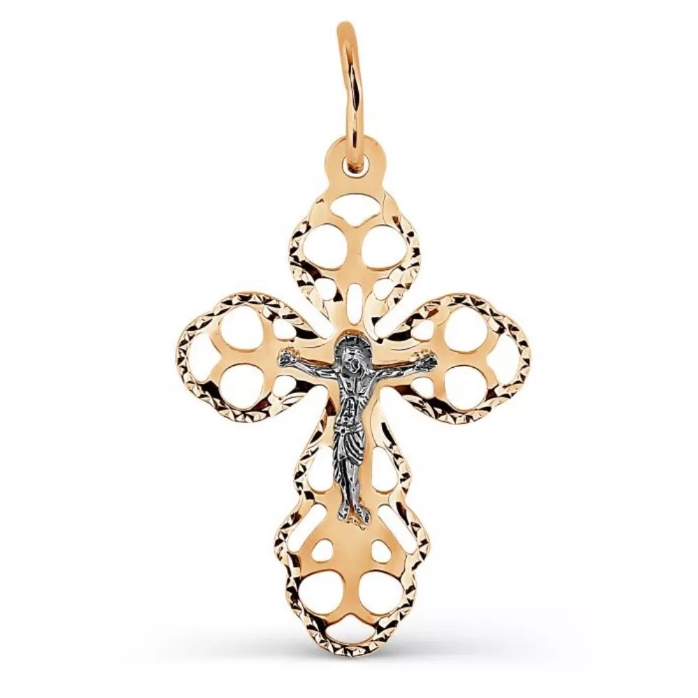 Золотой крестик подвеска из красного золота 585 пробы с алмазной обработкой - это изящное и драгоценное ювелирное изделие, которое олицетворяет веру, красоту и изысканность.
