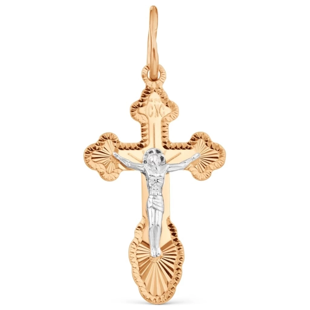 Изысканный православный крестик, выполненный из красного золота 585 пробы, украшен образом Иисуса из белого золота. Такое сочетание оттенков придаёт изделию выразительность и глубину, подчеркивая духовное и эстетическое значение украшения.