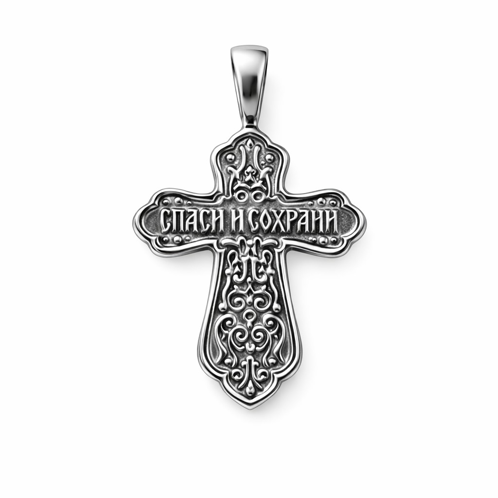 Надпись «Спаси и сохрани» символизирует духовную защиту, веру и внутреннюю поддержку. Крестик подходит как для мужчин, так и для женщин и станет значимым личным оберегом.