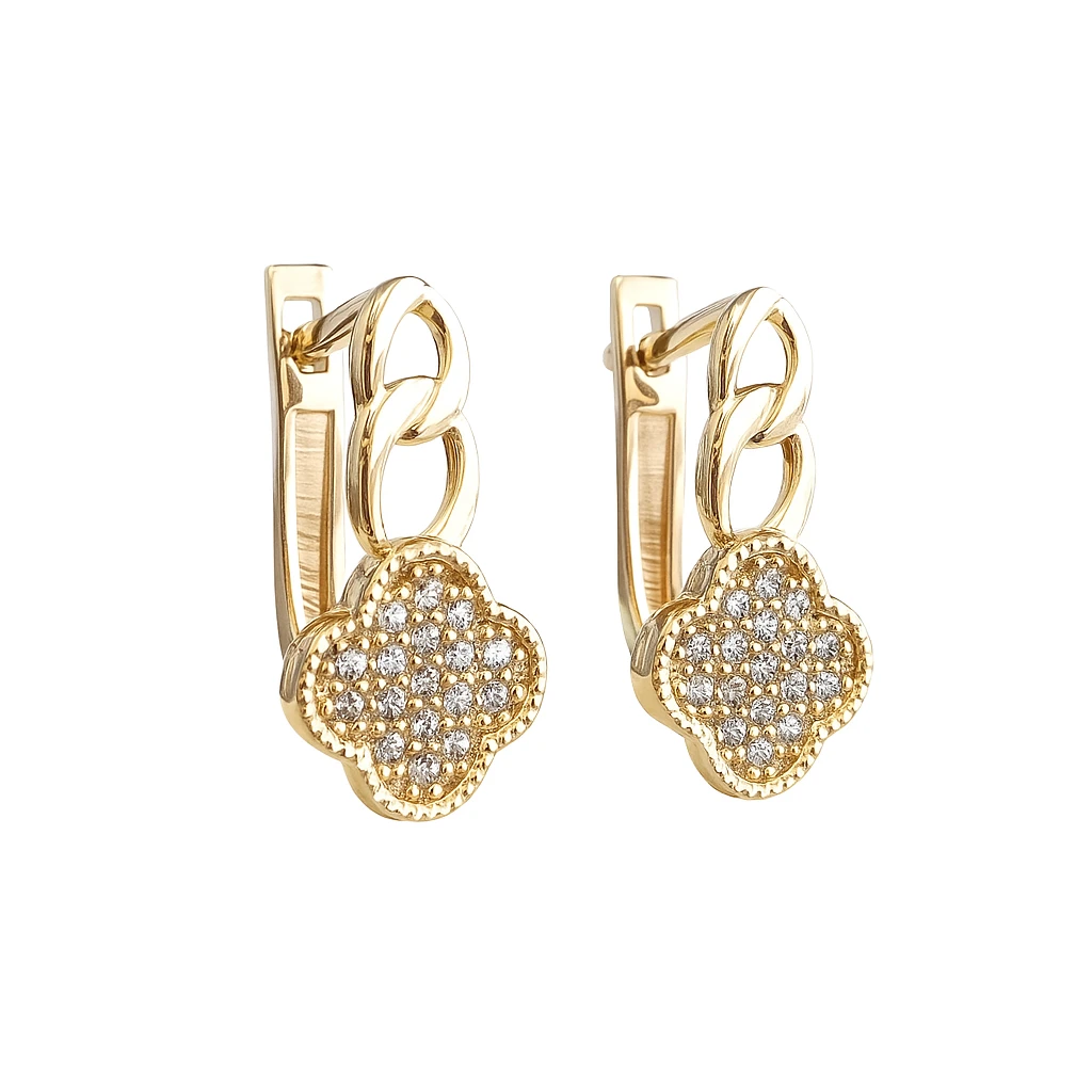 Серьги из красного русского золота 585 пробы с фианитами и английским замком⎪OR243252Ger
