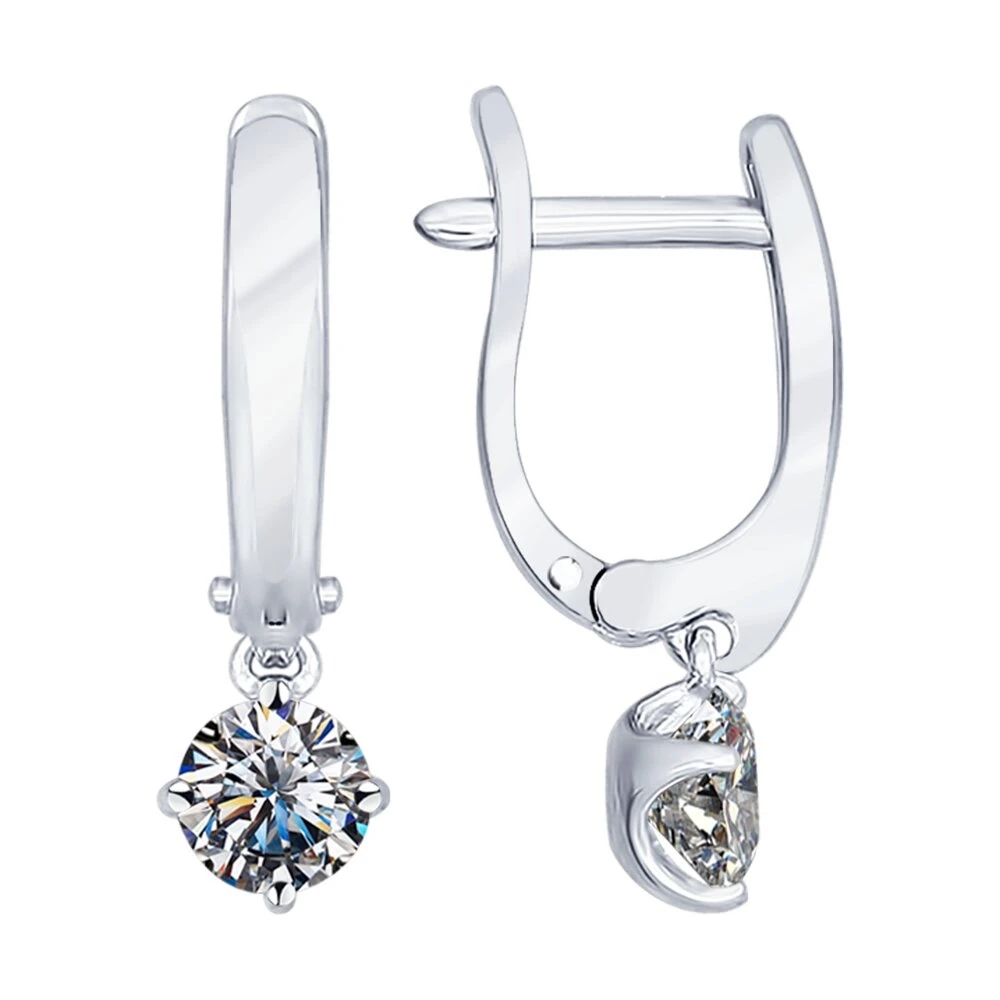 Серьги из серебра 925 пробы, которые предварительно обработали по технологии "Родирование". Изделие блистает белыми бесцветными фианитами.
