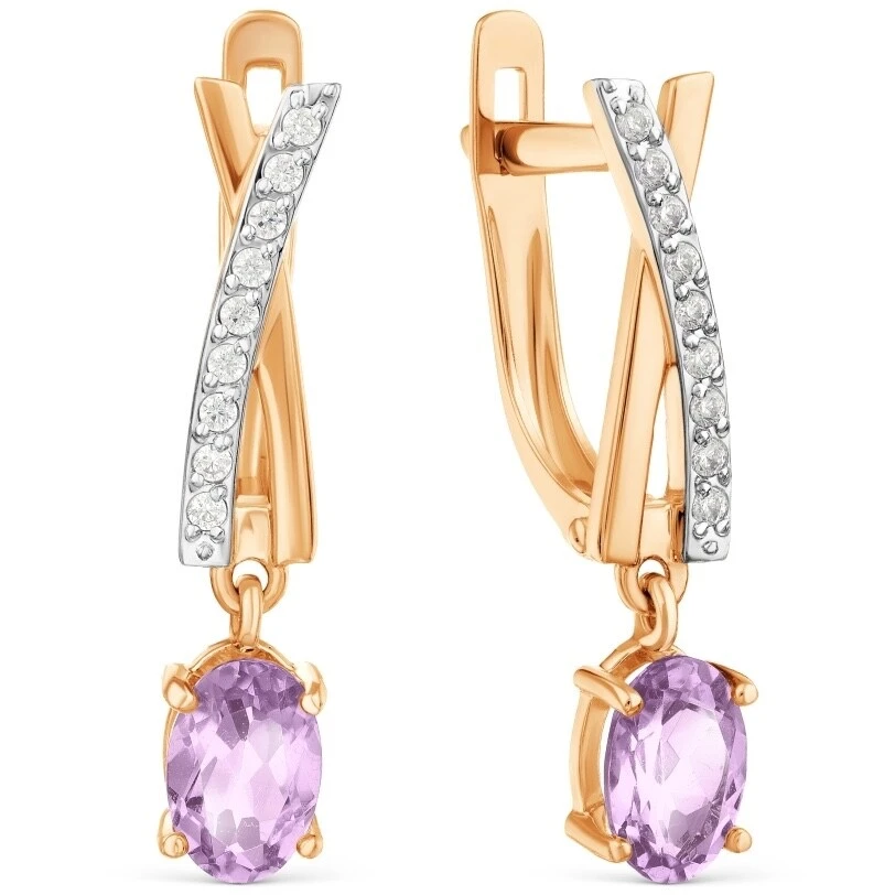 Серьги из красного золота 585 пробы, украшены аметистами и фианитами (OR3029451A).