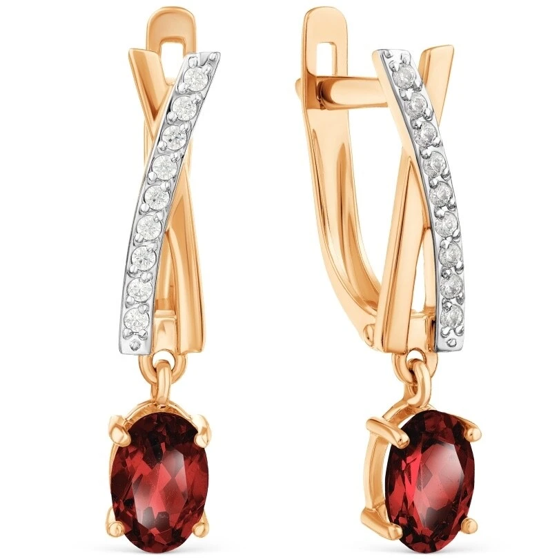 Серьги из красного золота 585 пробы, украшены гранатом и фианитами (OR3029451G).