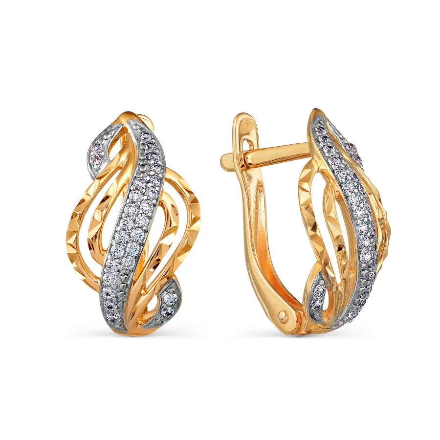 Серьги из золота 585 пробы с алмазной гранью и фианитами (OR27625) с английским замком