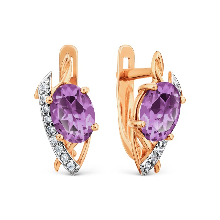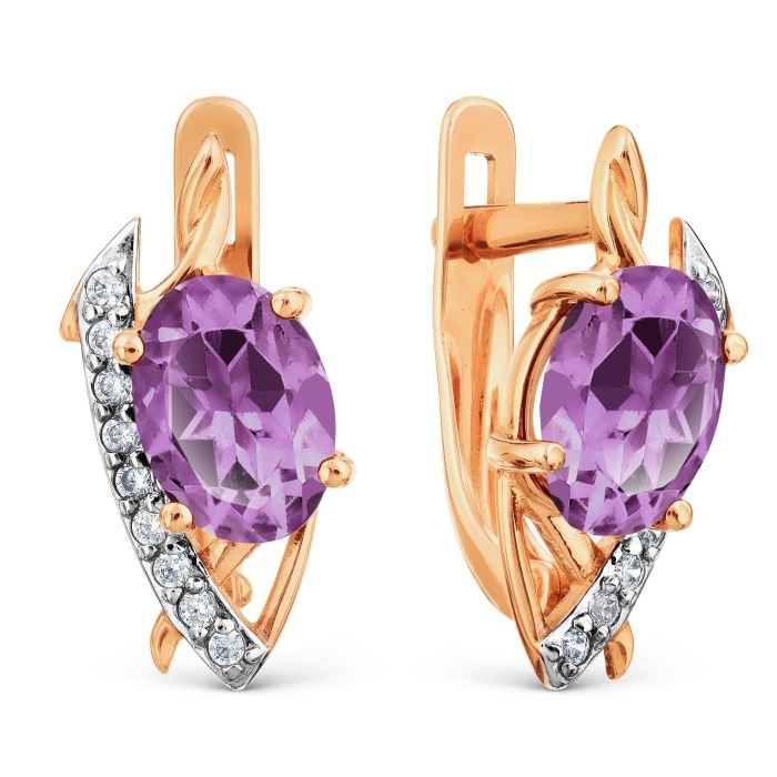 Серьги с аметистами и фианитами из красного золота 585 пробы OR28360A