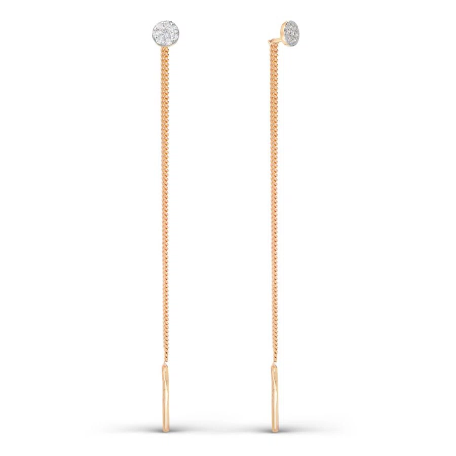 Серьги-продевки-цепочки из золота 585 пробы с русскими бриллиантами (OR27821)