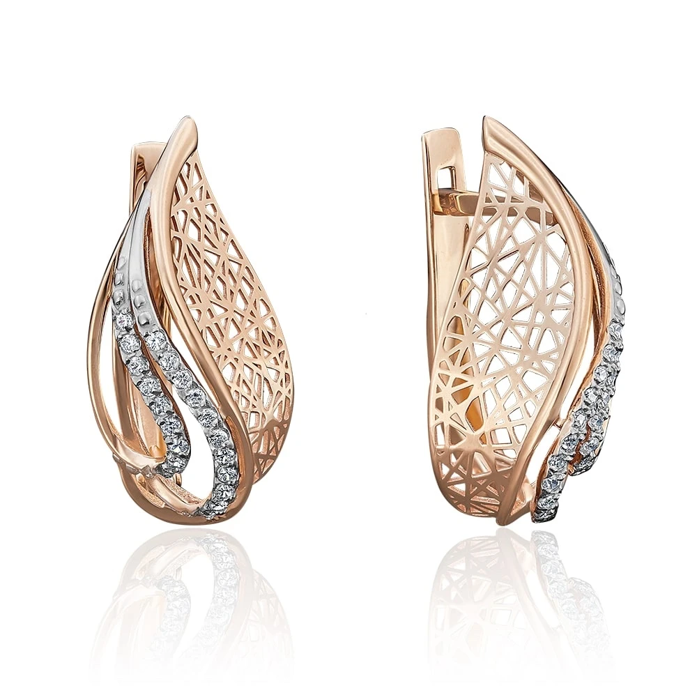 Серьги с фианитами из красного русского золота 585 пробы⎪OR02-3754-00-401-1110-329