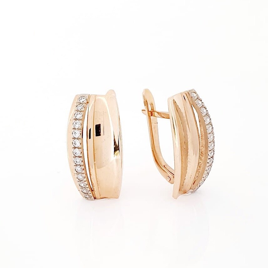 Женские серьги из красного золота 585 пробы с фианитами. Изделие с английской* застежкой.