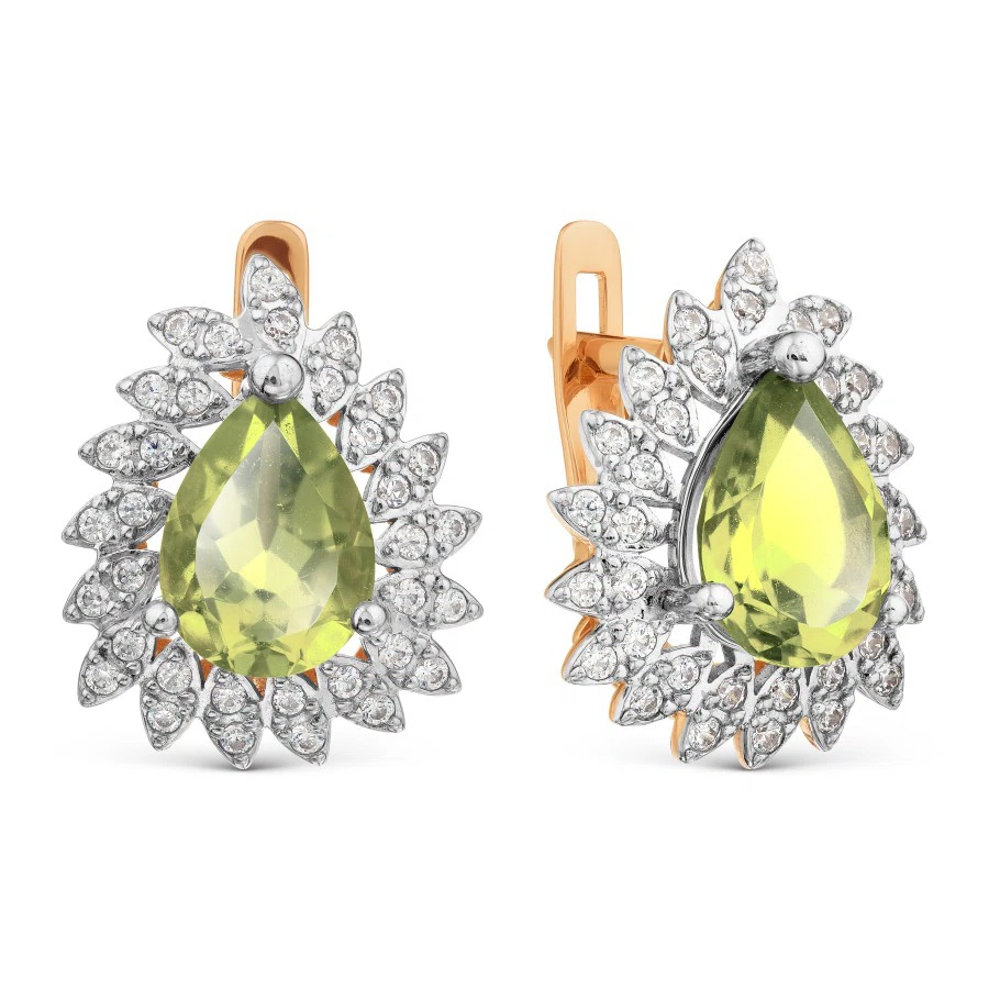 Серьги с хризолитами и фианитами из красного золота 585 пробы OR29301Ch