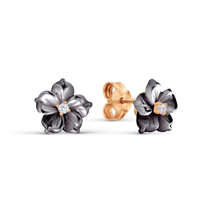 Красное золото 585 пробы придает серьгам теплый и роскошный оттенок, что идеально сочетается с черным перламутром и фианитами. Эти серьги гвоздики подходят как для особых моментов, так и для повседневной носки, добавляя вашему облику изящество и стиль.